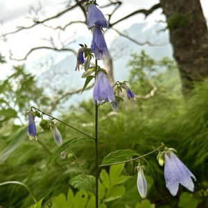 ソバナ(岨菜) キキョウ科ツリガネニンジン属 花期:8〜9月 生育場所: 山地の林縁、崖 ・茎は直立していますが、斜上する ことも。 高さ0.5〜1㍍ 時に丈夫で分岐す る ・普通無毛だか、稀に長い毛のある ものもある ・葉は互生し、卵形~広披針形、粗 い鋸歯があり長い柄がある ・頂部の円錐花序にまばらに花をつ け、花は垂れ下がり下向きに咲く ・花冠は淡紫色。 先端が広がった鐘形、先が5裂す る ・萼片は披針形、鋸歯は無い 名前の「岨」は、山のけわしい所、断崖、がけ、急斜面などを意味する漢字で、そのような場所に生えることからだとか。。 確かにここは栂池自然園の中でも断崖、がけ、急斜面、そんな場所で咲いていました。 この少し先の場所の階段は大きくひっくり返っており、ゆっくりと気をつけて進みました。 ①の写真はもう終盤でしたが、すぐ横に蕾を沢山付けたソバナがスタンバイしていました。 🤳2025/8/5