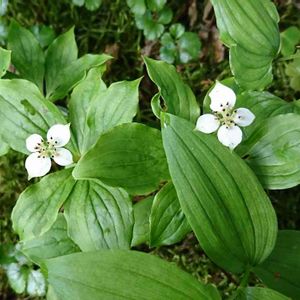 ゴゼンタチバナ 今日も暑かったですね😆 お疲れ様です😌💓 一昨日の花…もう少し続きます~🌀 木の根元に広がっていました。控えめな佇まいがとても良いです。 2020,08,02 栂池自然園
