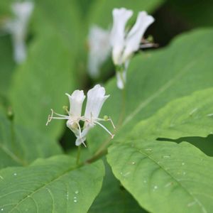 オオヒョウタンボク(大瓢箪木) スイカズラ科 白色の2個の花。 9月に赤い実がつくよう。 実の付いた姿も可愛いのでまた見てみたい。 2018/7/11 撮影