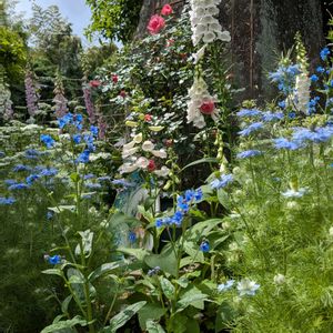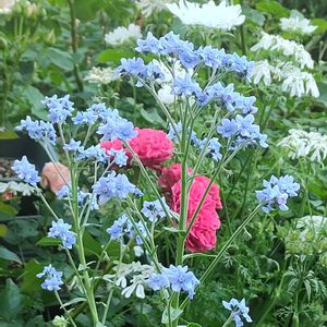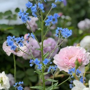 こぼれ種から ジキタリス ニゲラ シノグロッサム オルレア が咲いてます♫ 薔薇レオナルドダビンチがチラホラ開花してきましたが 満開とのコラボはなかなか難しいかも〜😂