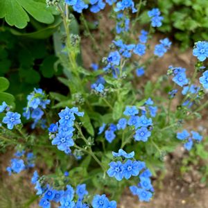 シノグロッサム‘メモリーマリンブルー’ 今年の春、半日陰のバラ花壇にお迎えしたシノグロッサム。澄んだ青色が本当にきれい。わすれな草に似ているが花が大きくて色も濃い。