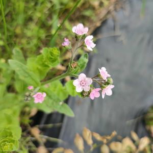 ピンクのお花を集めました🩷🩷🩷🩷🩷 3年前かな❓ 花ともさんから頂いた シノグロッサム 毎年こぼれ種から咲きます✌️🩷 とんでもないところに‼️ ピンクのこの子は南の塀際に 普段見えない所に😅 ブルーは出入り口に✌️