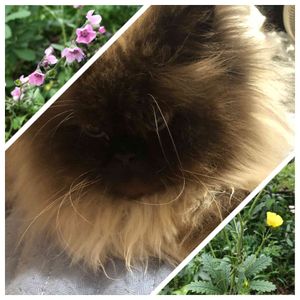 おはようございます😃 皆さんの昨日のpic観ているうちに、 そばにいるサリーをパチリ なんの花を一緒にしようかと 庭に咲いている小さな花にしました😊 一日遅れのニャンニャン祭りに参加します😃 医療従事者及びコロナと闘っている方々に感謝👏