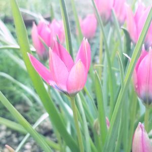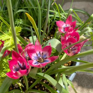 原種チューリップ リトルビューティ 猫かカラスに掘り起こされたりしながらも、 難を逃れた子達が頑張って咲いています☺️👏🏻