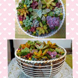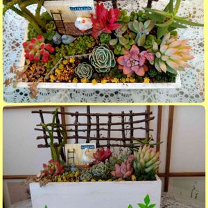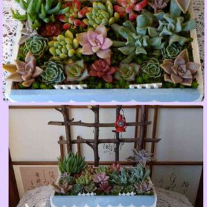 こんにちは^_^ やっと箱の寄せ植えが一つ完成しました(^^)💓 箱の材質が弱そうなので専用塗料を塗ったり絵を描いたり どの多肉を使うか迷ったりで時間かかりました(^^) この子達の成長が楽しみになりました(^^)💓