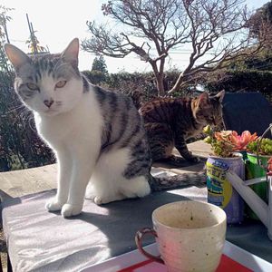 こんにちは🎵 ちょっと遅めのランチ🥪 ベーコンホットサンドに庭の畑のレタスを挟んでいただきま〜す😋 ボクにはないのかニャ⁉️ とたろさん😁 ポカポカ陽気で、日向ぼっこ日和です🎵