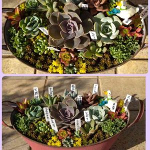 こんにちは(^^) 🍀寄せ植え🍀 昨日作りました ルビーネックレス レモータ 虹の玉 アモエナ 朧月 白牡丹 秋麗 サクサグラレ モスグリーン ブロンズ姫 名前無しが少し
