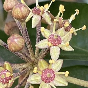 先程、投稿したビナンカズラの近くにキヅタのお花も咲き始めていました。