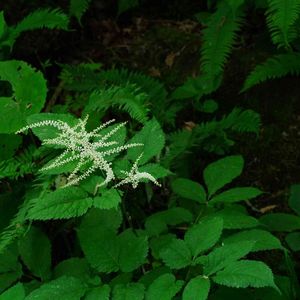 暗闇から|´︶`*)チラリ ショウマたちもまだまだですけど、咲き出してきましたね、これはヤマブキショウマ