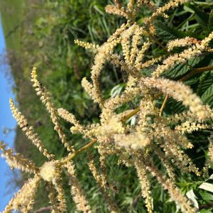 最初に見た時は細い白い花が垂れ下がっているように見えましたが、少しずつボリュームアップして起き上がり、今はアスチルベのようにも見えます。 バラ科ヤマブキショウマ属 アルンクスの別名も。