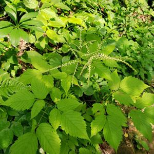 ヤマブキショウマ(山吹升麻) バラ科 分布 北海道 本州 九州の山地や林縁、岩場に生育します。 葉がヤマブキに似ているのでこの名があります。 山菜名はイワダラで食べられます。おひたし、天ぷらなどに…。🌱🌱🍀