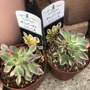 アエオニウム サンバースト綴化 JAの100円苗コーナーにまさかのサンバースト綴化! 即買いして来ました。チビ苗ですが👍