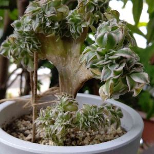 綴化さん☺️ 綴化というものを知らずに買ってきた。茎にも葉っぱがびっしり、成長が早い。お化けみたいだよ。でも可愛いの😄