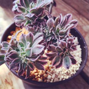 小さいアエオニウム寄せです:D 夏の間は元気がなかったですが、寒くなってきていい感じ! 以前に折れてしまったカシミアバイオレットも復活です。