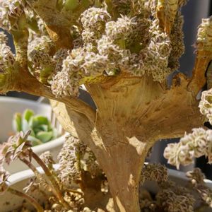 2023/04/16 サンバースト綴化。 去年、クリスマス寒波での冷凍被害から 奇跡的に復活したサンちゃん 茶色くチリチリになった葉っぱもなくなった! 自然解凍後に茎から出て来た根っこが いい味出してると思うのは私だけかな?