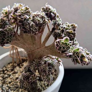 サンバースト綴化🪴 黒法師などアエオニウム属は下の方の葉っぱがカサカサに枯れていきます🙄 枯れた葉っぱを取り除きました~🌿オヤジのスネ毛抜くみたいでチョット癖になりそう😂なんかスッキリしたわ(*´艸`*)
