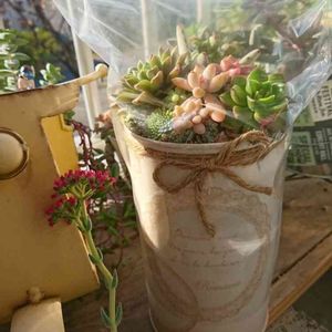 割れ鉢活用術。 底穴ないから不安… 巨大多肉の中からちょうどいいチビ多肉を探すのが大変だたよ(´;ω;`)