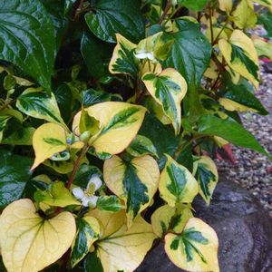 八重のと同じく園芸店で見つけたカラーリーフのドクダミ 特別の場所に植えるも普通のドクダミより繁殖力が弱い なので、葉っぱが普通に戻ってたりするのが残念😥