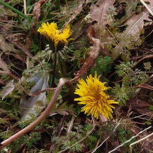 枯れ葉の下では春待ちの花たちが 春にはまた一面オルレアになりそう タンポポの黄色が目に鮮やか✨