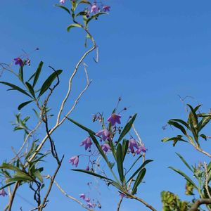 青空にユラユラ 見上げればかわいい紫の花が、、、 ナスの花に似てると思えば、何とナス科だった