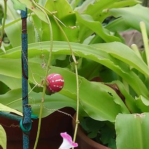 何年ぶりかで里帰りしたオキナワスズメウリ 芽を見つけた時はビックリ! 何とか実が赤く色づいて やっぱりかわいい✨ また来年も見れますように