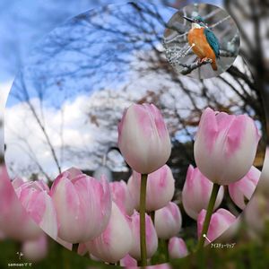 桑名市なばなの里にて 寒そうな空に向かって 健気に咲くアイスチューリップ 🤭😅🤳でパシャリ➀②③ カワセミさんも🐦️ ➃イルミネーションの線に止まるカワセミ ➄ラッキー👍 河津桜の枝に止まったカワセミ ➃➄(主人📸picから)