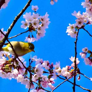 🌸桜のある風景🦜 メジロが桜の蜜の香りに誘われ