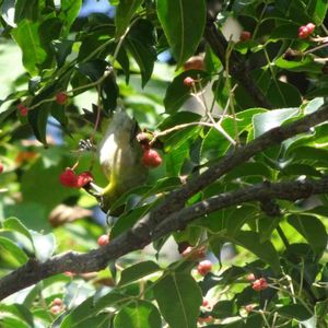 ハゼノキの実にメジロさん。 どの実が美味しそうかな~♪と、吟味しています。 ひと粒採るとパクッとひと口。 ひと呑みでございます。 実は結構デカいょ、喉詰まるんちゃうん?って思うけど、軽くひと呑みでございます。