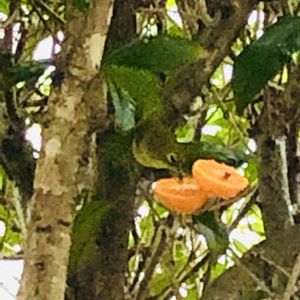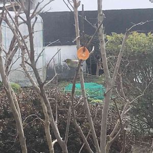 おはようございます😃キンモクセイの木の枝に取り付けたミカン🍊に、メジロ🦜見つけましたよ😊美味しそうに😝食べてました。 ちょと分かりづらいかも⁉️友人宅にて遭遇です。とても可愛らしいんです🥰🥰