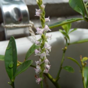 ネジバナです.マメキンカンの鉢に同居しています.面積比で約25分の1にトリミングしました. 撮影 Jun. 16, 2021