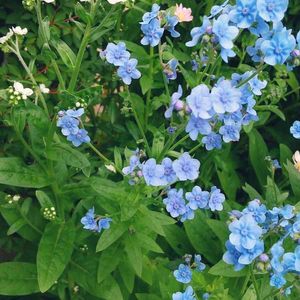秋の種蒔きから順調に育って可愛い花が咲きました🎉 一般的にはシノグロッサムと呼ばれている花ですがオオルリソウ属(Cynoglossum)に含まれる植物は世界に約200種、日本に3種有ります。だから、属名を種名の様に掲げるのは好きで無いので、和名を掲げたいのですが、調べても混乱しています。 よく通っている名前はシナワスレナグサですがソレは別名で標準和名はホソバルリソウのようです🤔ただ、ホソバルリソウを調べると明らかに別の花が出て来る事が有ります。