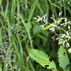 おはようございます☀ オオバギボウシの咲く 土手に涼しげに咲いている イネ科の植物💚 ヒメノガリヤスかな? 涼しげです。