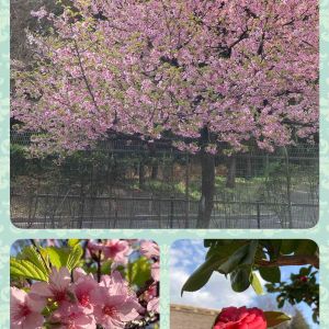 古民家園の河津桜と椿 盛りをちょっと過ぎてしまったですが ギリ間に合った☺️💖 ふれあいの森の先にある古民家園にて