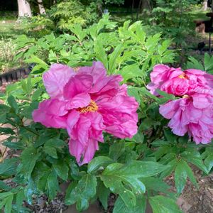 ボタン 札がないため名前不明🤣 大和ふれあいの森には牡丹も少し植えてあります☺️ 木々の間の小さなスペースですが、これは人の頭位の大きさでした🤣
