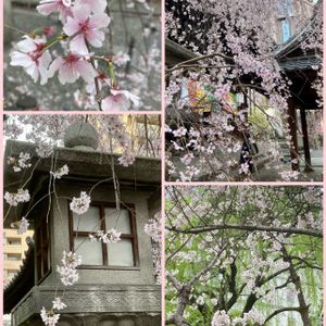 1枚目 パン屋さんの玄関先 2枚目 パン屋さんの斜め向かいにある公園の桜 🌸満開間近🌸って感じ 3枚目 六角堂の桜🌸 4枚目 六角堂の桜🌸 同じ木で向きを変えてパシャリ📱 🌸満開🌸 たくさんの人でした
