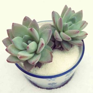 【スノーキャンディー🍬】さん 可愛い名前の多肉ちゃんです😊 葉先がピンク色になっていて可愛いです♡ 名前にスノーがつくので、雪の上でpic撮りました😅