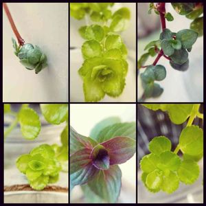 伸びてきた葉っぱを切って、水栽培していたら、発根したので 秋色の鉢に、植えてあげました 🪴💜❤️💚 ミニミニコキア同様、順調に育ってくれています🪴🟢🪴*∗*∗*