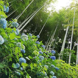 明月院の竹林の中で上を見上げたら 気持ちまで真っ直ぐになれました 明月院グリーン(✿˘艸˘✿)