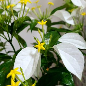 🏷️白い水曜日♡ [コンロンカ]菎崙花 アカネ科 ハンカチの木に似てますねぇ✨ 白い萼苞がヒラヒラとしてます💕🎶😍 白色は夏には涼しさを呼び気持ちを和らげます✨ 🟡黄色い星形の花が可愛いです。