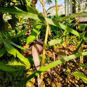 お久しぶりです。 今日は暑くなりましたね💦💦💦 林の中😊 この子は日陰が好きなのかな 浦島草です。