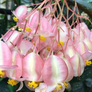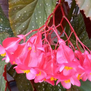 《木立性ベゴニア》 地下に球根や根茎をつくらず、茎が立ち上がるベゴニアを木立ち性ベゴニアと呼んでいます🤗🌸 何段にも枝分かれしたシャンデリアのような花房が、葉の間からいくつも垂れ下がって咲き、花と葉の調和が美しい鉢花です🌸