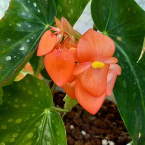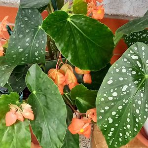 💚木立性ベゴニア 昨年の夏、挿し芽をして根が付いたものです。あまり育ちが良くなくて忘れがちでした。😉 日が当たると葉焼けするしね😅 ハート♥️の蕾が可愛い❗ 良く咲いてくれました🎵😍🎵