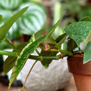 挿木にしたベゴニア、先日投稿した子の兄弟?姉妹?😉ですがこちらは外に置いています。同じ株なのに色が濃い❣️ 太陽光って凄いんだな〜😃