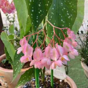 おはようございます😃 これは昨日の朝のハッピーな出来事➰✨✨ 用事で訪ねたご近所さんの玄関前のこのお花を見て、「〇〇姉さん、このお花可愛いねぇ💕 写真撮ってもええ?」って言うと、「ええよ〜。じゃあ、一鉢持って帰りな☺️」と、同じ大きさの別の鉢をプレゼントしてくれました〜 わ〜いわ〜い🙌🏻🙌🏻 ☺️🎶🎶🎶 木立ベゴニア(木立性ベゴニア)の花言葉 『つり合いが良い』💕💕💕 たし🦀🤔