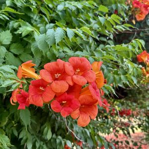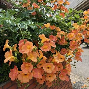 🍀🌻🪴💐🌹🌻🍀 🍀🧡ノウゼンカズラ🧡🍀 💐ノウゼンカズラの花言葉は(名誉) (名声) (栄光) (華のある人生) (豊富 な愛情)などです 💐ノウゼンカズラはノウゼンカズラ 科ノウゼンカズラ属に属する落葉 性つる性植物です 💐開花時期は6月から7月頃の初夏か ら夏にかけてオレンジ色や赤、黄 色などの鮮やかな花が咲き、夏の 訪れを告げる花です 💐花の形はトランペットのような形 をしていて、つるから沢山の花が 房状に垂れ下がって咲きます 💐中国原産の落葉性つる性木本で、 茎の節から気根を出し、フェンス や壁、他の木などに絡みつきなが ら高く伸びていきます 🍀🌻🪴💐🌹🌻🍀