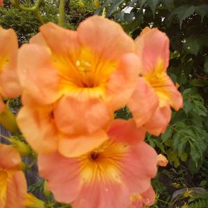 ❀今日のお花❀ ノウゼンカズラ 台風4号の影響で☔です 気温が30℃いってない、 やっと猛暑から開放された~~ 思い切って髪カット行ってきます サッパリしたい❗