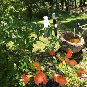今日のお花ノウゼンカズラ🌸 ツルがお隣さんにお邪魔するので剪定しました✂️ 花数少ないです