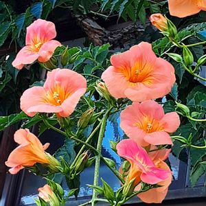 昨日はかなり蒸し暑かったですねー 恵の雨でしたが☔️ 台風が近づいてますね〜🌪 直撃は逃れたいですが〜鉢物の移動を考えると特にね〜 (・_・; 6月に綺麗に近くの幼稚園のフェンスに毎年咲く今日のお花ノウゼンカズラです〜 🧡🧡🧡 気分も明るくしてくれるお花ですよね〜✴️今週もよろしくお願いします🤲 台風にくれぐれもお気をつけて‼️