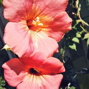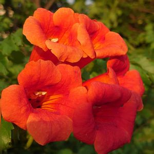 ノウゼンカズラ ノウゼンカズラ科属 眩いほどの~ オレンジ赤色の 花びらが綺麗です🤩