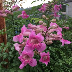 我が家のノウゼンカズラが遅く咲いています😃鳥が運んでくれました〰️💖たぶん3メートルの高さはありますよ➰😅